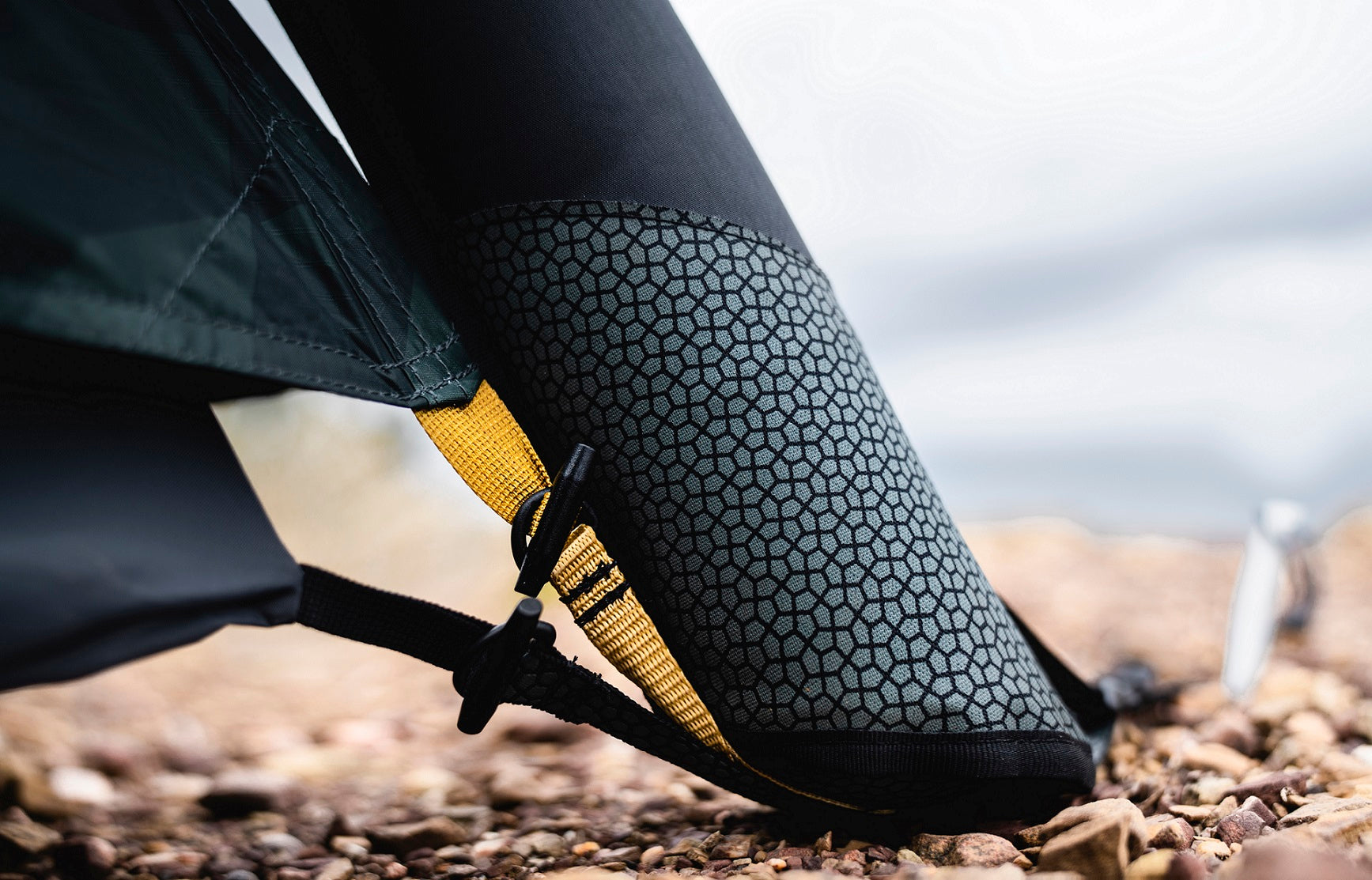 We hebben de doekkwaliteit van onze tenten aanzienlijk verbeterd. Vanaf nu gebruiken we voor alle tenten 40D High Tenacity Polyester met Double Ripstop. Deze stof heeft een hogere treksterkte dan gewone polyestergarens. Daarom heeft onze nieuwe tentstof een hogere scheursterkte. Bovendien valt het beter, ritselt het minder en voelt het zachter aan.