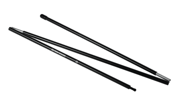 Koolstofvezelstokken hebben ingebouwde flexibiliteit. Bij het opzetten van uw shelter moet u de luifel net zo ver spannen dat de stokken een lichte buiging maken. Daarna vermindert u de spanning tot verticaal. Dit is meer dan genoeg spanning om uw shelter rechtop te houden, zelfs bij zware windbelasting.