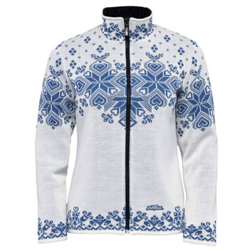 Elegant-sportieve damestrui met traditioneel Noors patroon, geschikt als bovenlaag. Het heeft een nauwsluitende snit, een praktische lange YKK rits en een binnenzak. Het is gebreid van een hoogwaardig blendgaren met 50% Merino wol en 50% acryl met TEFLON® Fabric Protector, dat waterafstotend is en een verhoogde weerstand tegen vuil heeft. Omdat Teflon® de individuele vezels omhult, heeft het geen invloed op het ademende vermogen van het breisel. Het is bestand tegen wassen en chemisch reinigen. De voering is gemaakt van EQ-TECH membraanmateriaal, dat absoluut winddicht en extreem ademend is. Deze combinatie beschermt tegen wind en voorkomt ongewenste onderkoeling en oververhitting tijdens actief gebruik.