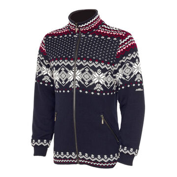 Sporttrui voor heren met een klassiek Noors patroon, geschikt als bovenlaag. Hij heeft een handige lange YKK-rits, twee externe en één interne ritszak. Hij is gebreid van een hoogwaardig blendgaren met 50% Merinowol en 50% acryl met TEFLON® Fabric Protector, dat waterafstotend is en een verhoogde weerstand tegen vuil heeft. Omdat Teflon® de individuele vezels omhult, heeft het geen invloed op het ademende vermogen van het breisel. Het is bestand tegen wassen en chemisch reinigen. De voering is gemaakt van EQ-TECH membraanmateriaal, dat absoluut winddicht en extreem ademend is. Deze combinatie beschermt tegen wind en voorkomt ongewenste onderkoeling en oververhitting tijdens actief gebruik.