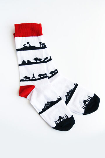 Bent u een reiziger met hart en ziel? Herinner uw vroegere avonturen en draag 32 vlaggen uit elke hoek van de wereld bij u. Of laat uw voeten inspireren door onze Panoramasokken, waarop verschillende wereldschatten staan afgebeeld, zoals Stonehenge, Parijs of de Taj Mahal. Ze zijn gemaakt van katoen en comfortabel om elke dag te dragen.
